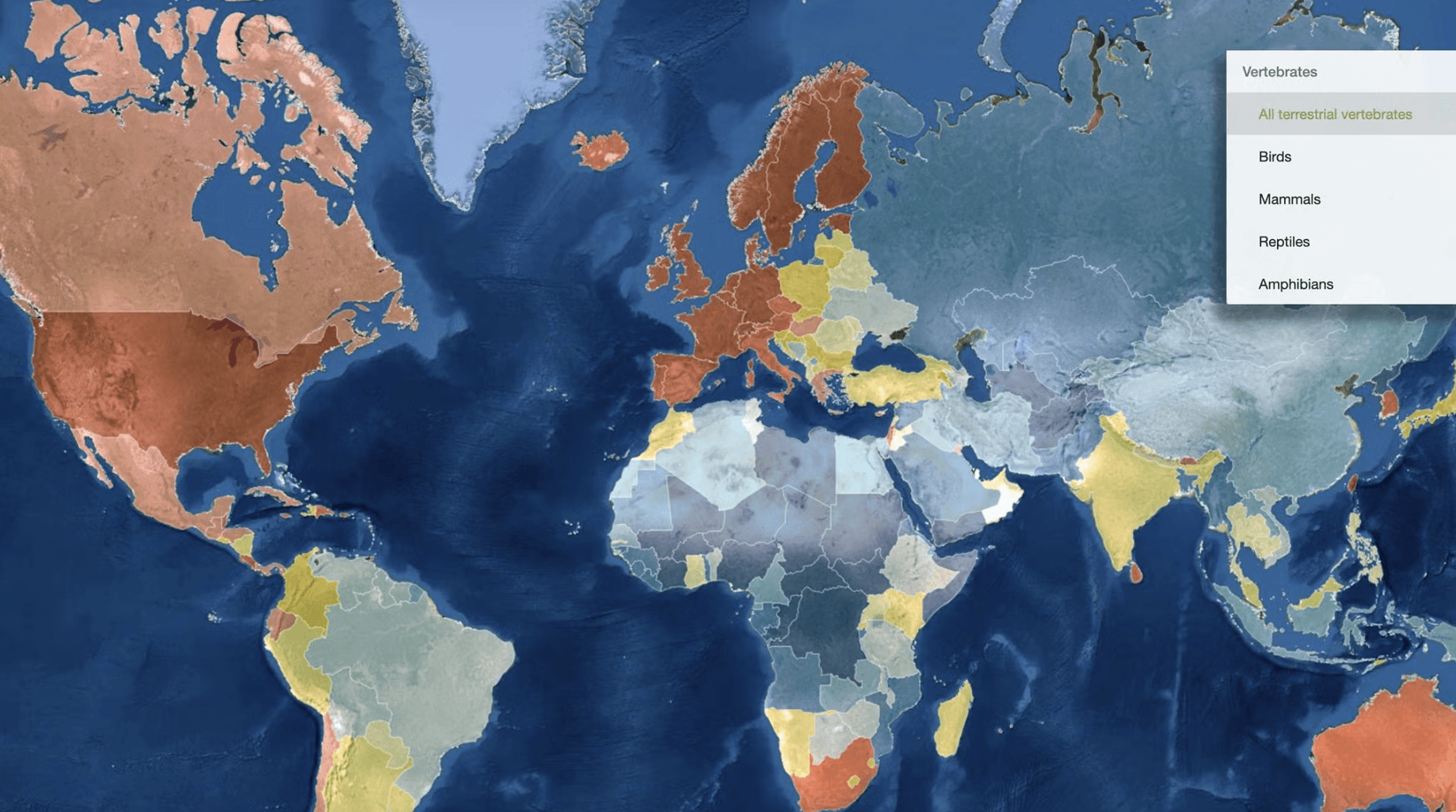 While the indices used in the study were used to demonstrate the biological diversity of terrestrial vertebrates, they can be readily updated as new data becomes available and expanded to other taxa, such as marine and invertebrate species.